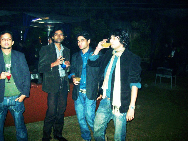Every man regards his own life as the New Year’s Eve of time.Finally after so many unsuccessful attempts i kept my self an ideal body but ashish have 100W of ethos.He leaves the office (Siemens Technology ) and reached the home around 12.30 p.m.Their after he collect two more guys (Hitesh+Sid )and direct them for searching “New Year Bash in New Delhi” .After about 20 min they found some sites and starts fetching the contact numbers.These contact numbers are then checked by the ashish.Anyhow we arranged some 5 VIP passes for 22,000 bucks at Malik Orchids Main Chattarpur Road, New Delhi.It have a A class arrangement’s for the party with Champanges ,Wine ,Scotch (BLACK LABEL, BACARDI, ABSOLUTE, CORONA, WINE ) together with Shadow dance ,Lazer shows,Jugglers,Fire works and Hookah lounge.Its really kind of TWISTED ADDICTION.