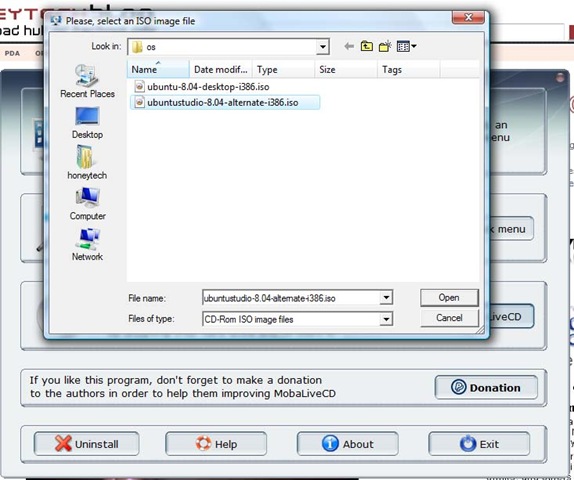 4.Browse and load your Linux ISO from your computer hard drive or CD-Rom.