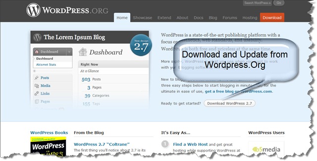 - Download a fresh copy of WordPress 2.7